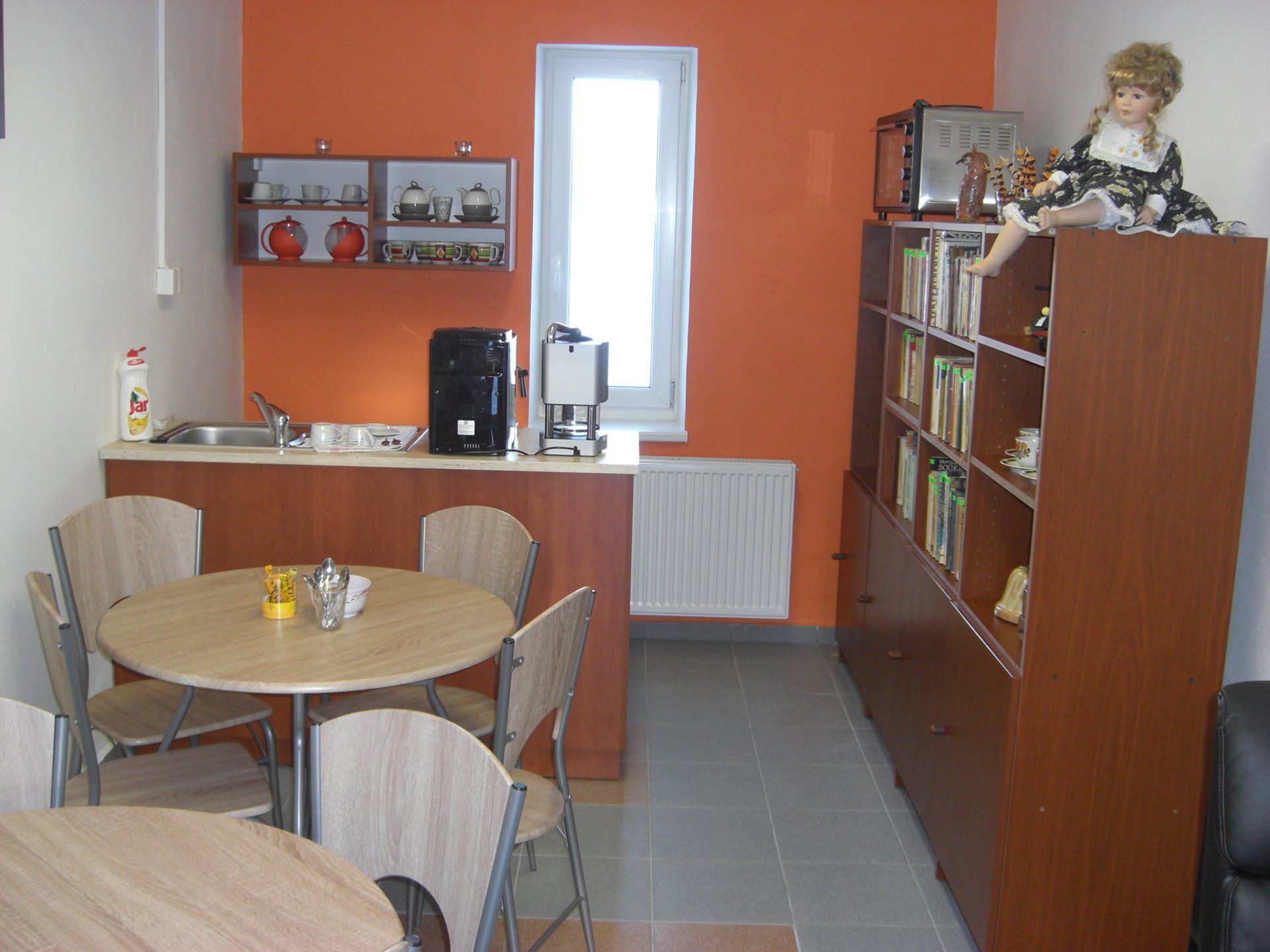 V areálu parku je pro klienty případně jejich návštěvy k dispozici společenské centrum s kavárnou a knihovnou.