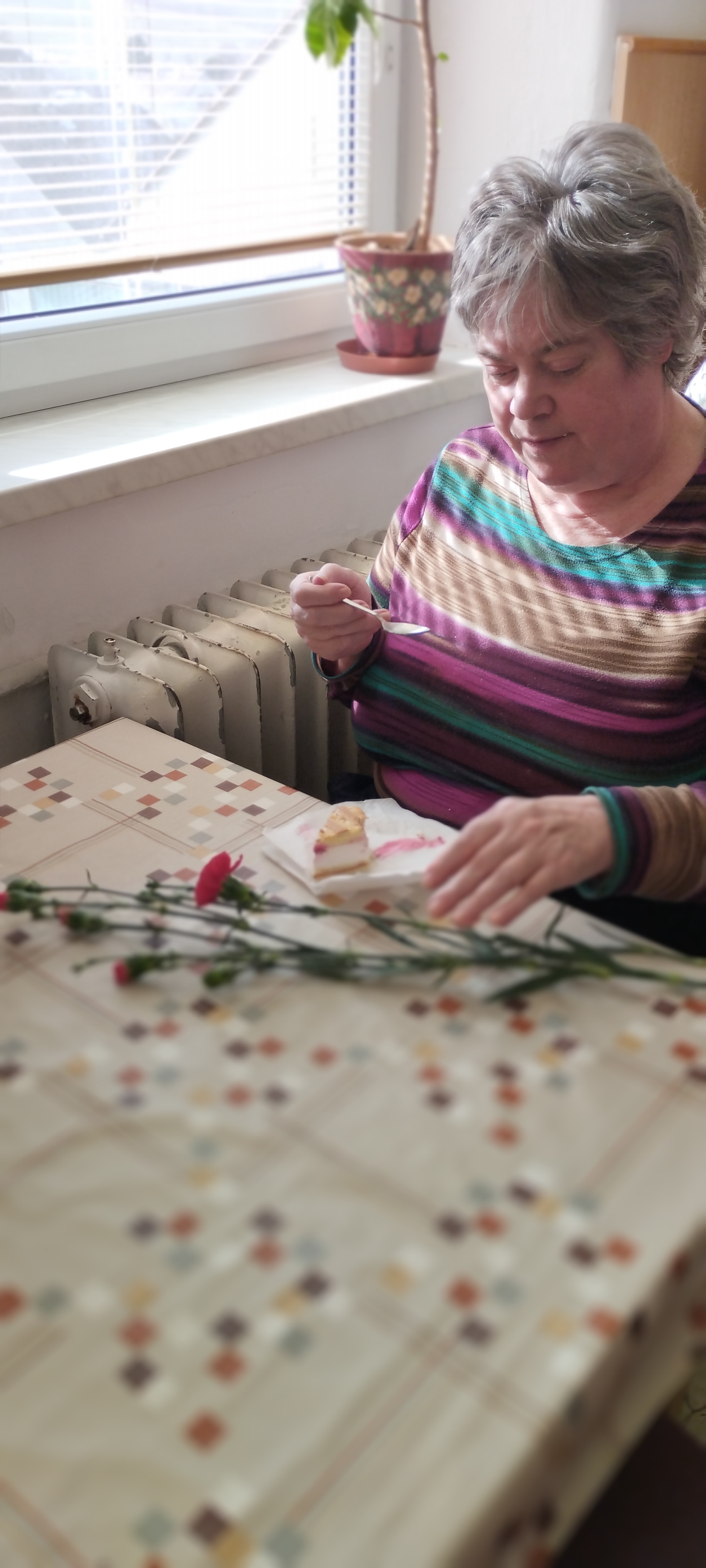 I letos jsme oslavili Mezinárodní den žen – klientky dostaly květiny, společně si poseděly, pochutnaly si na zákuscích a užily si muzikoterapii.