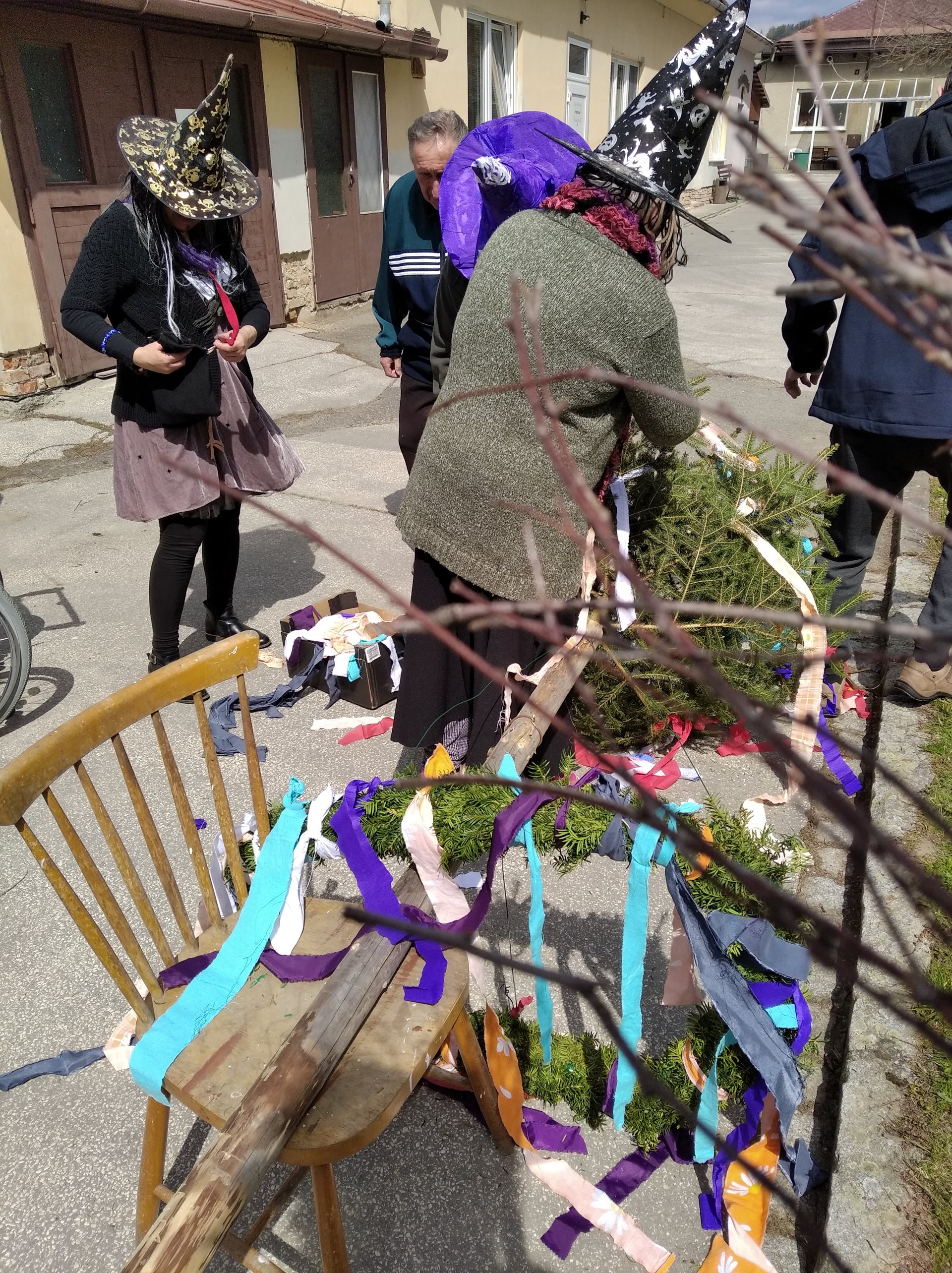 Akce byla obohacena autentickými kostýmy čarodějnic, velkou vatrou a májku se nám nakonec také podařilo postavit. :- )