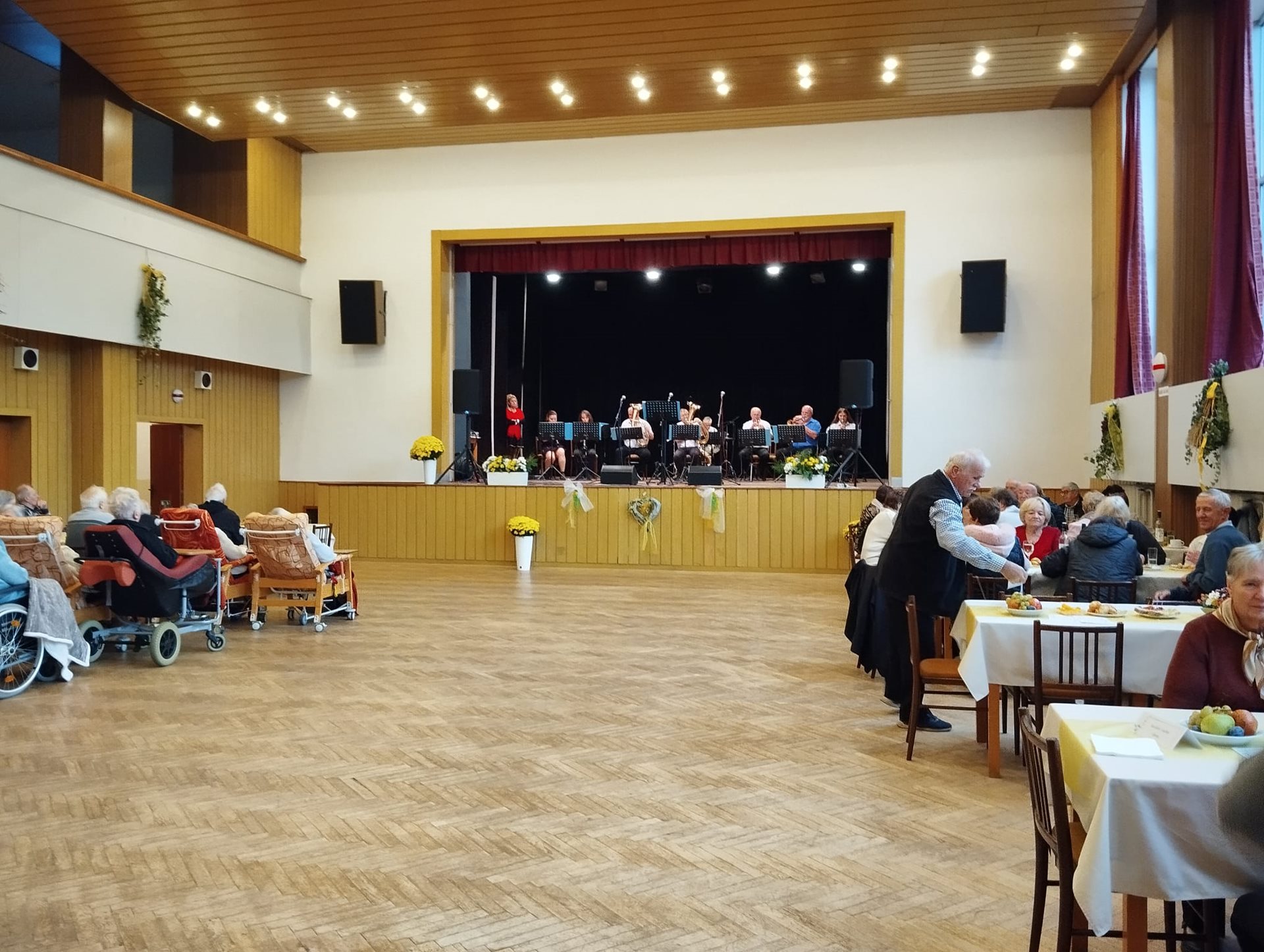 Dne 15. 11. 2024 jsme byli pozváni na Svatomartinskou husu do Domova pro seniory Štíty - Jedlí. Pro klienty i jejich doprovod byl připravený bohatý program. Svým vystoupením zaujaly jak "malé" mažoretky, tak také například folklorní soubor Markovice Postřelmov. Klienti tancovali, zpívali a byli nadšeni z pěkného odpoledne a celkového občerstvení. Už nyní se těšíme na další shledání.