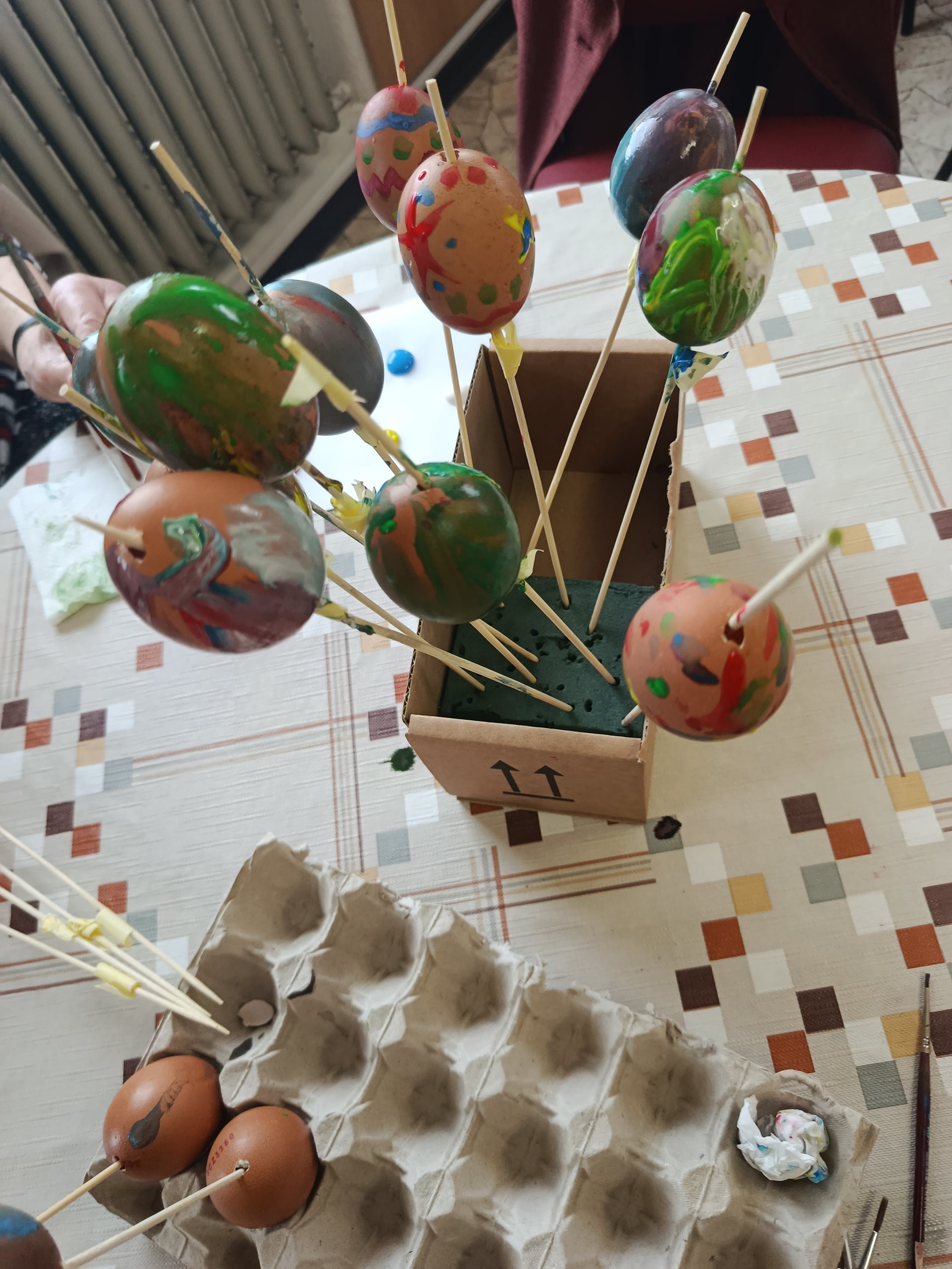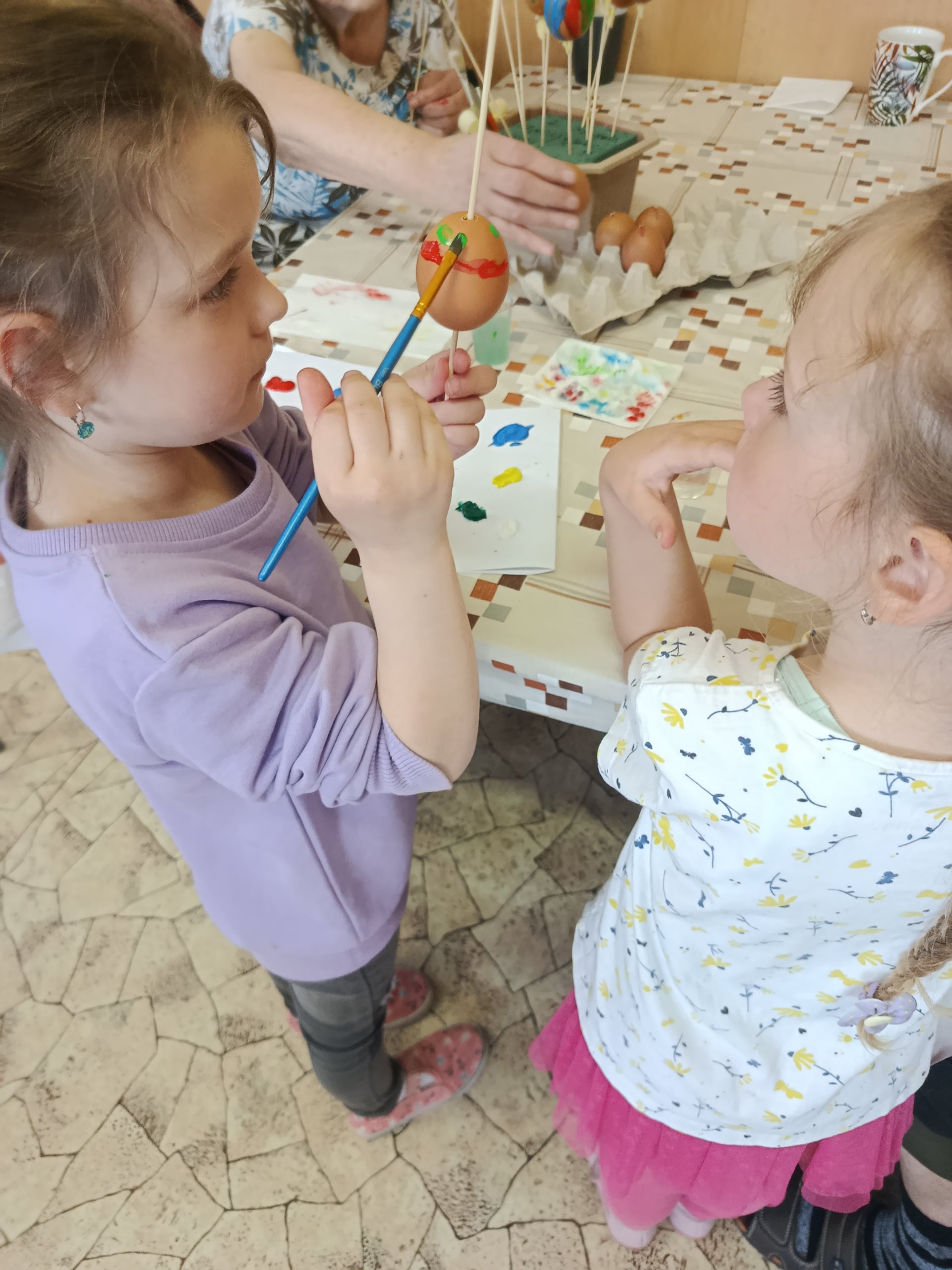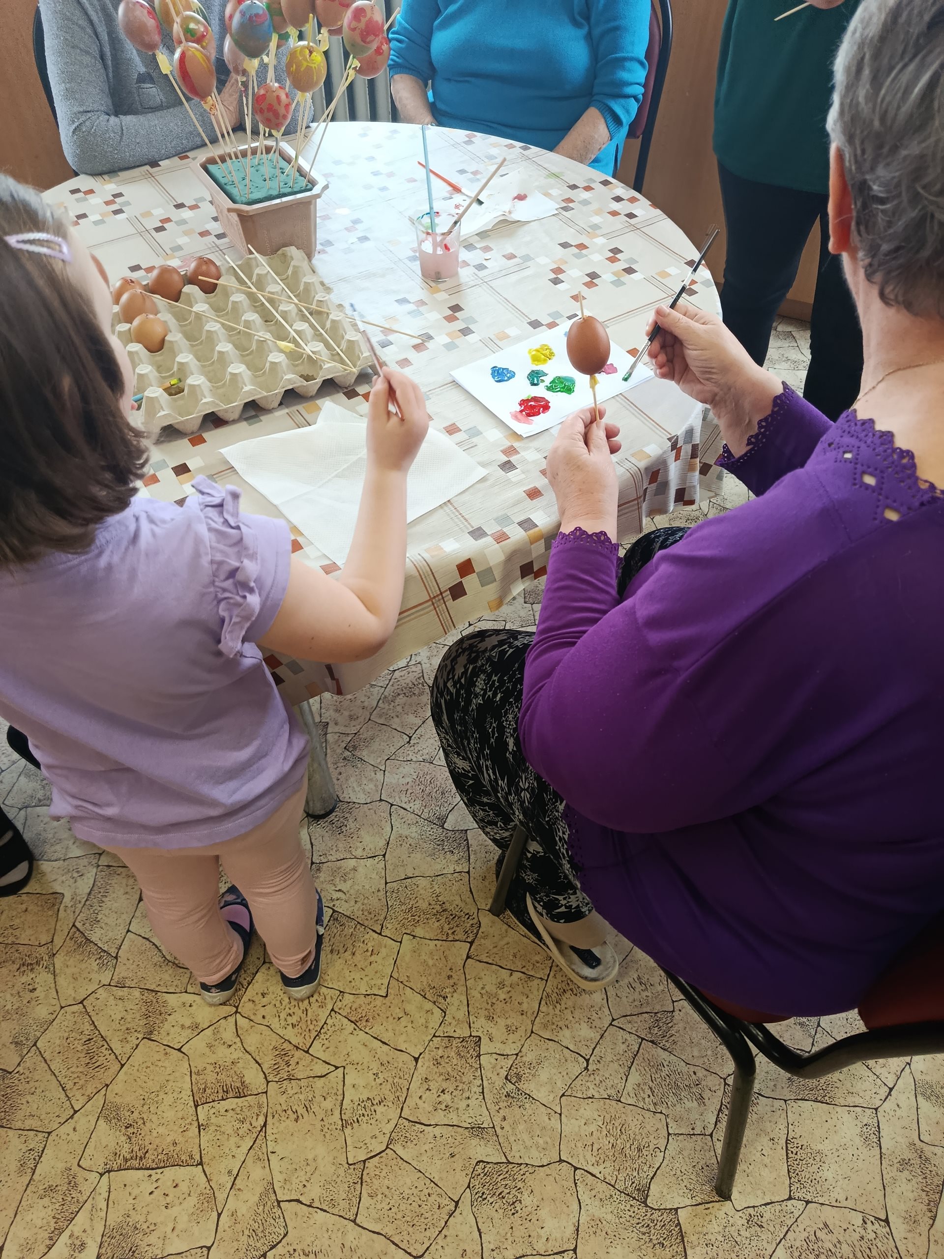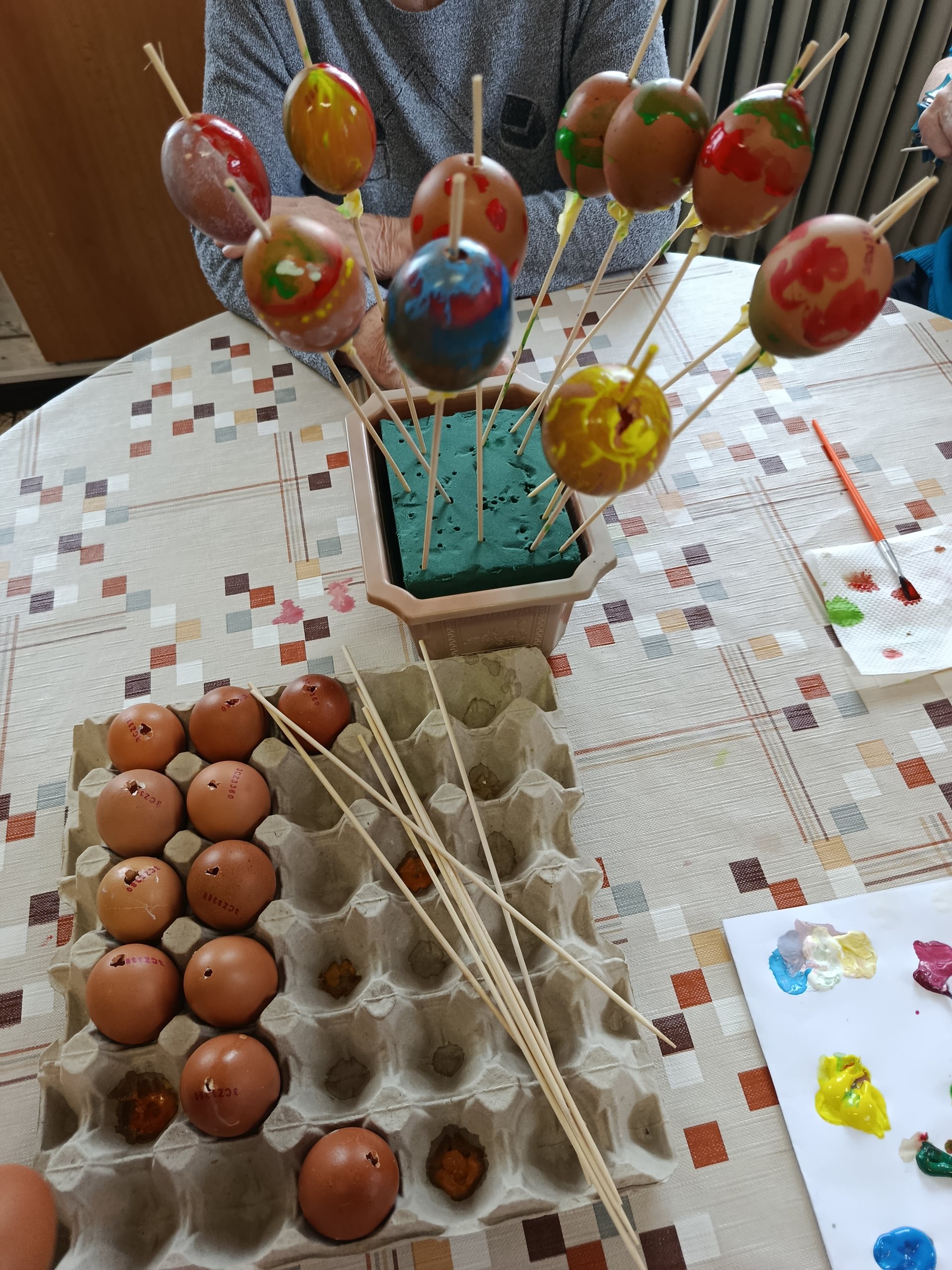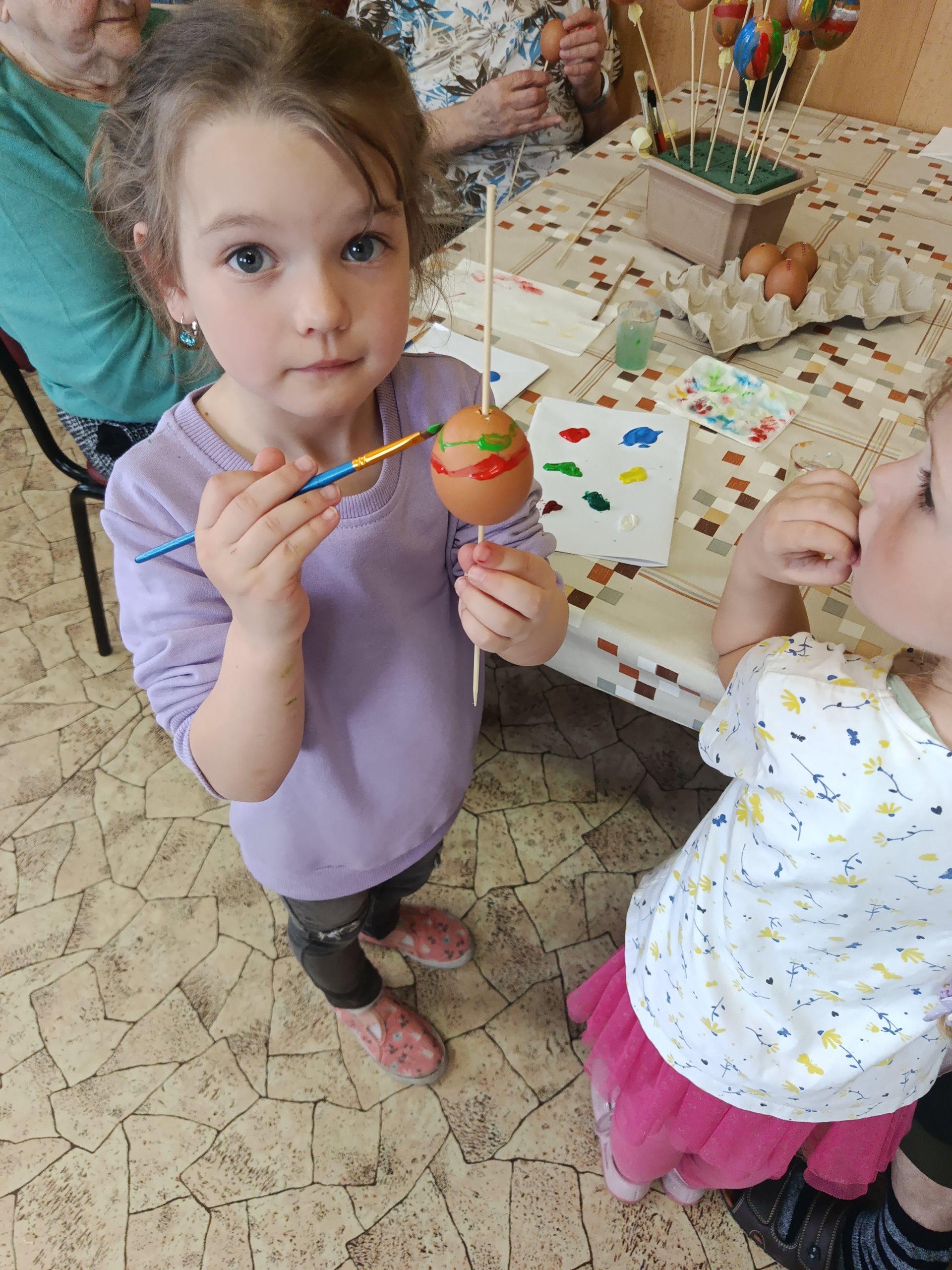 V dubnu navštívily seniory také děti z mateřské školy z Libiny a společně si vytvořili velikonoční výzdobu v podobě malovaných vajíček.