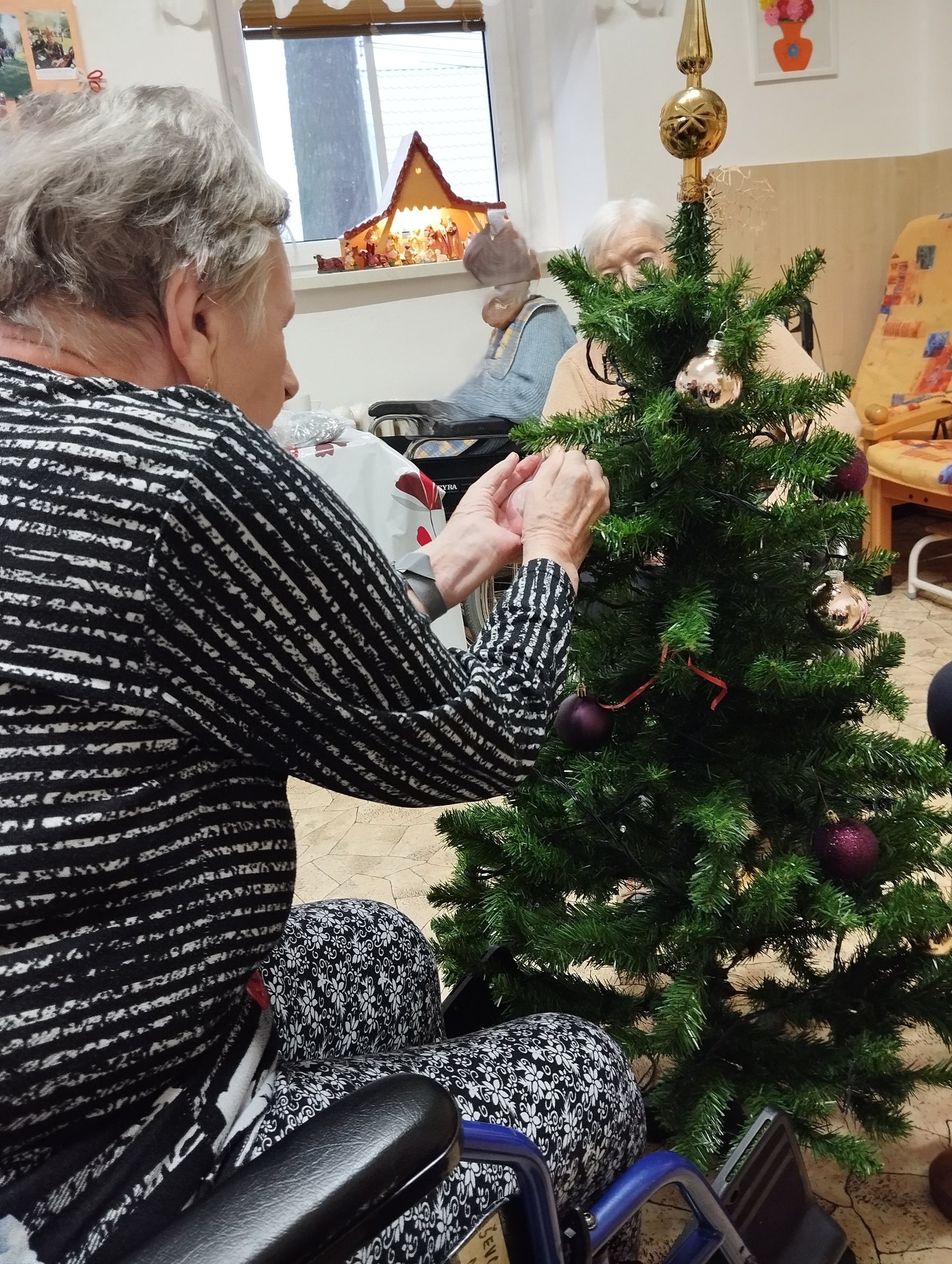 Obyvatelky z přízemí si užily příjemné předvánoční chvíle při zdobení vánočního stromečku.
