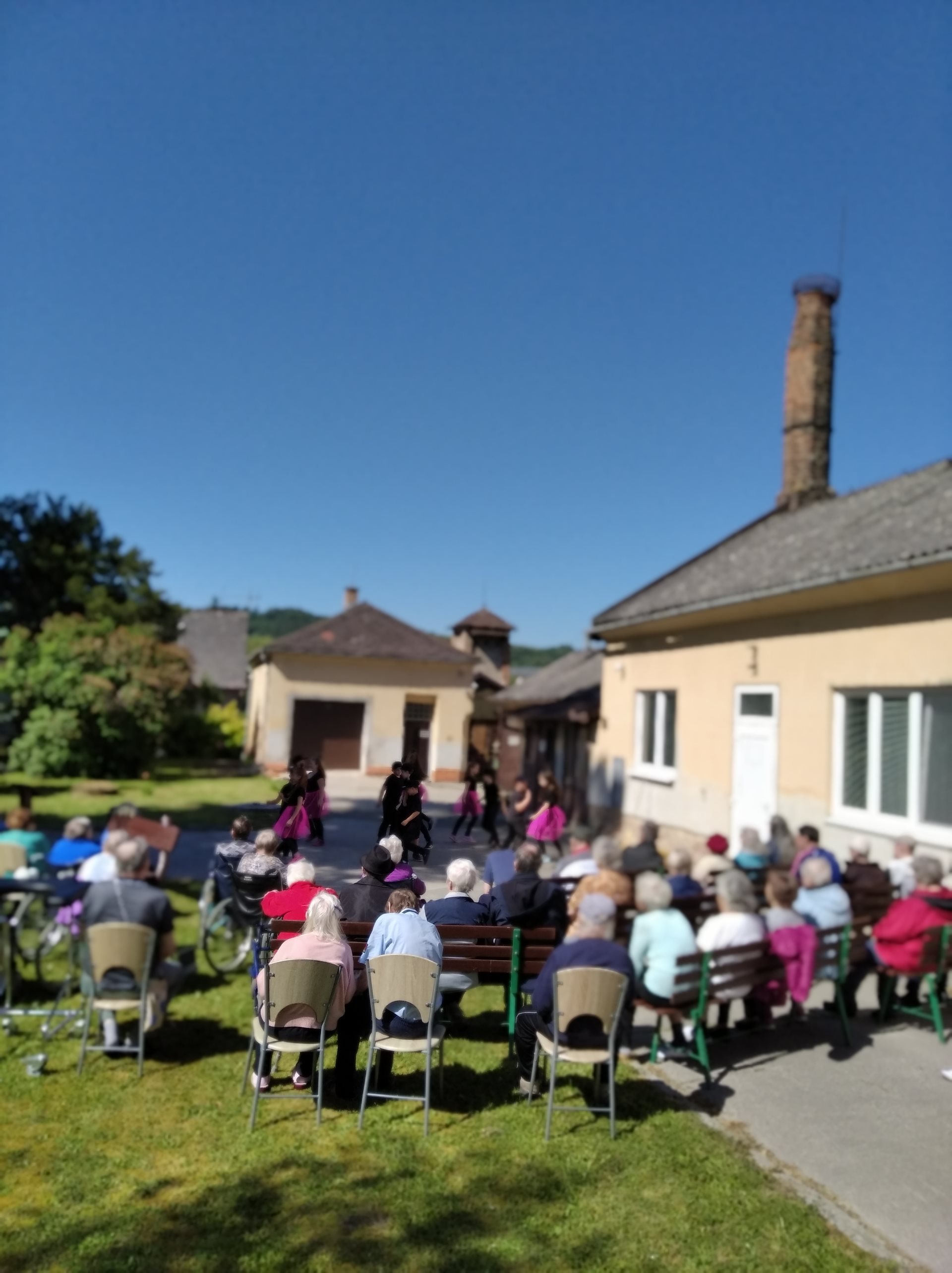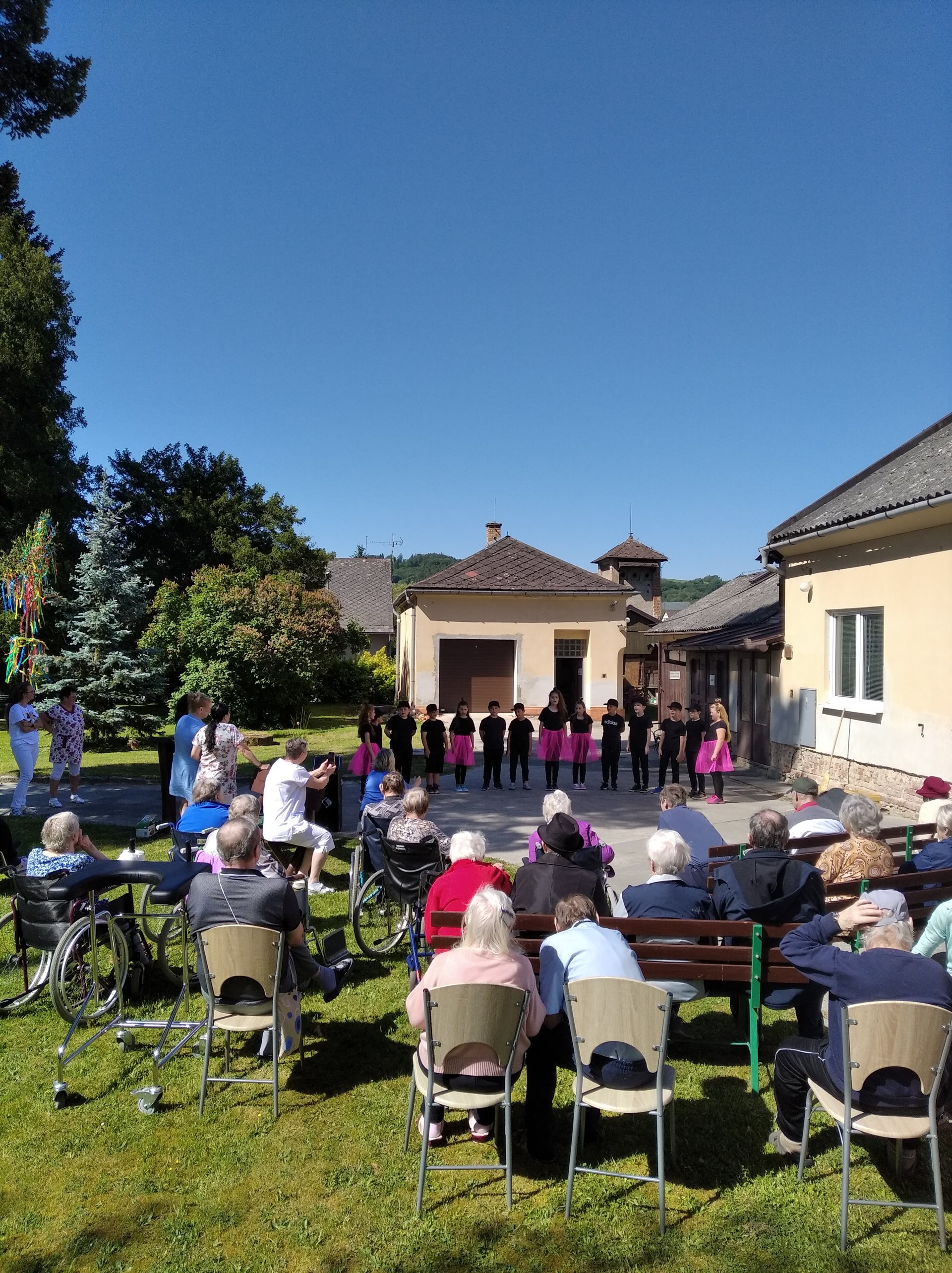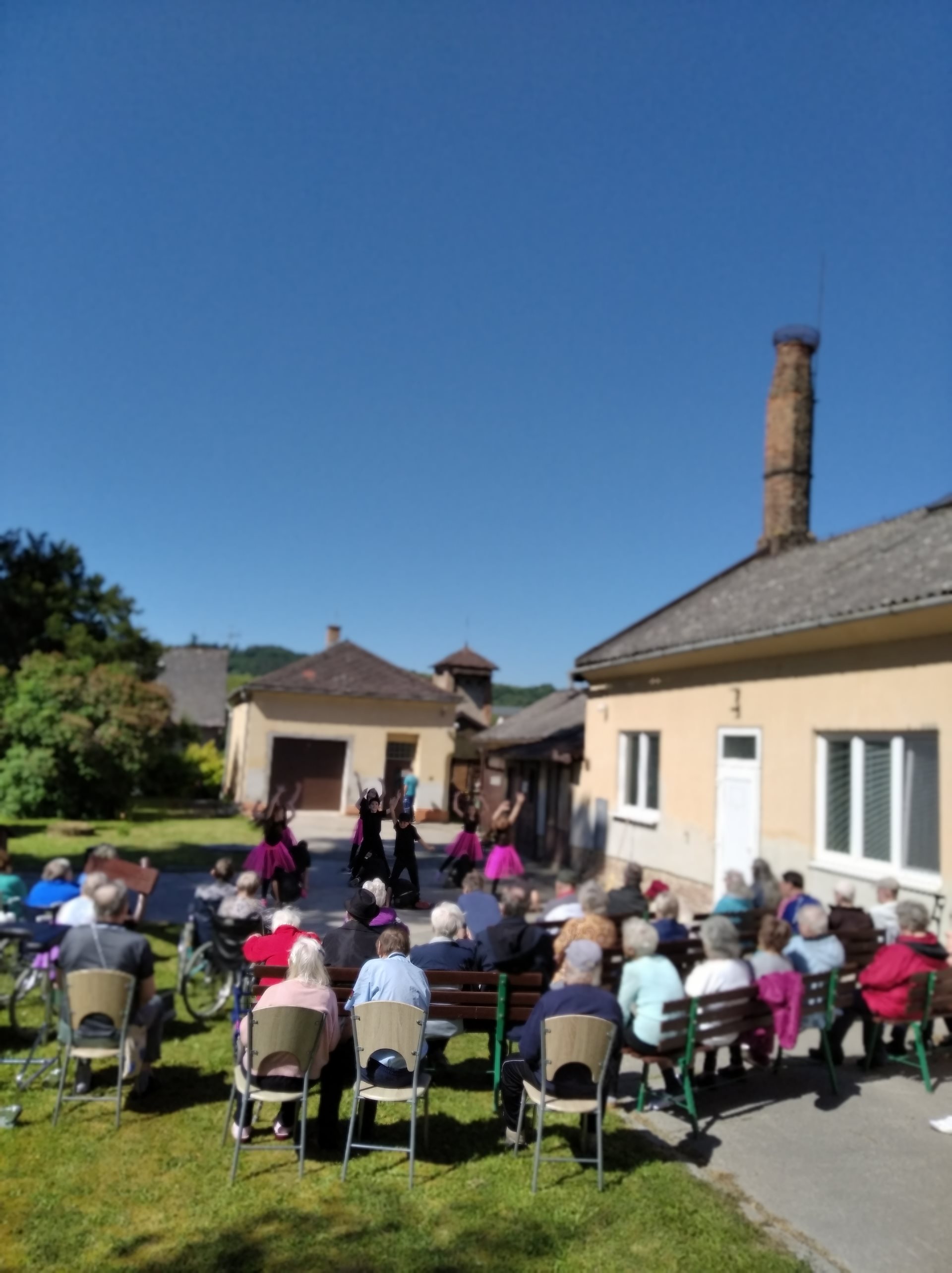 Za příjemného jarního slunce naše klienty potěšily svým tanečním vystoupením děti ze ZŠ Libina.